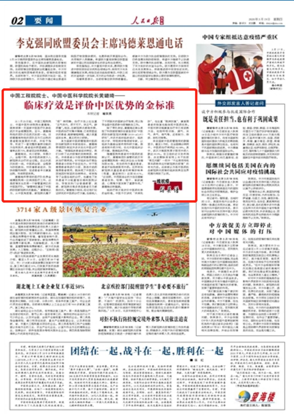 人民日報(bào)海外版報(bào)道黃璐琦:臨床療效是評價(jià)中醫(yī)優(yōu)勢的金標(biāo)準(zhǔn)